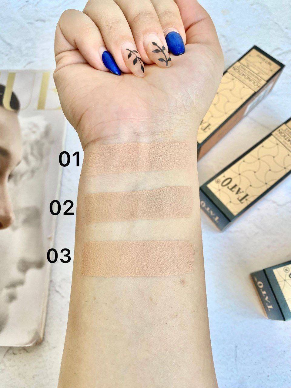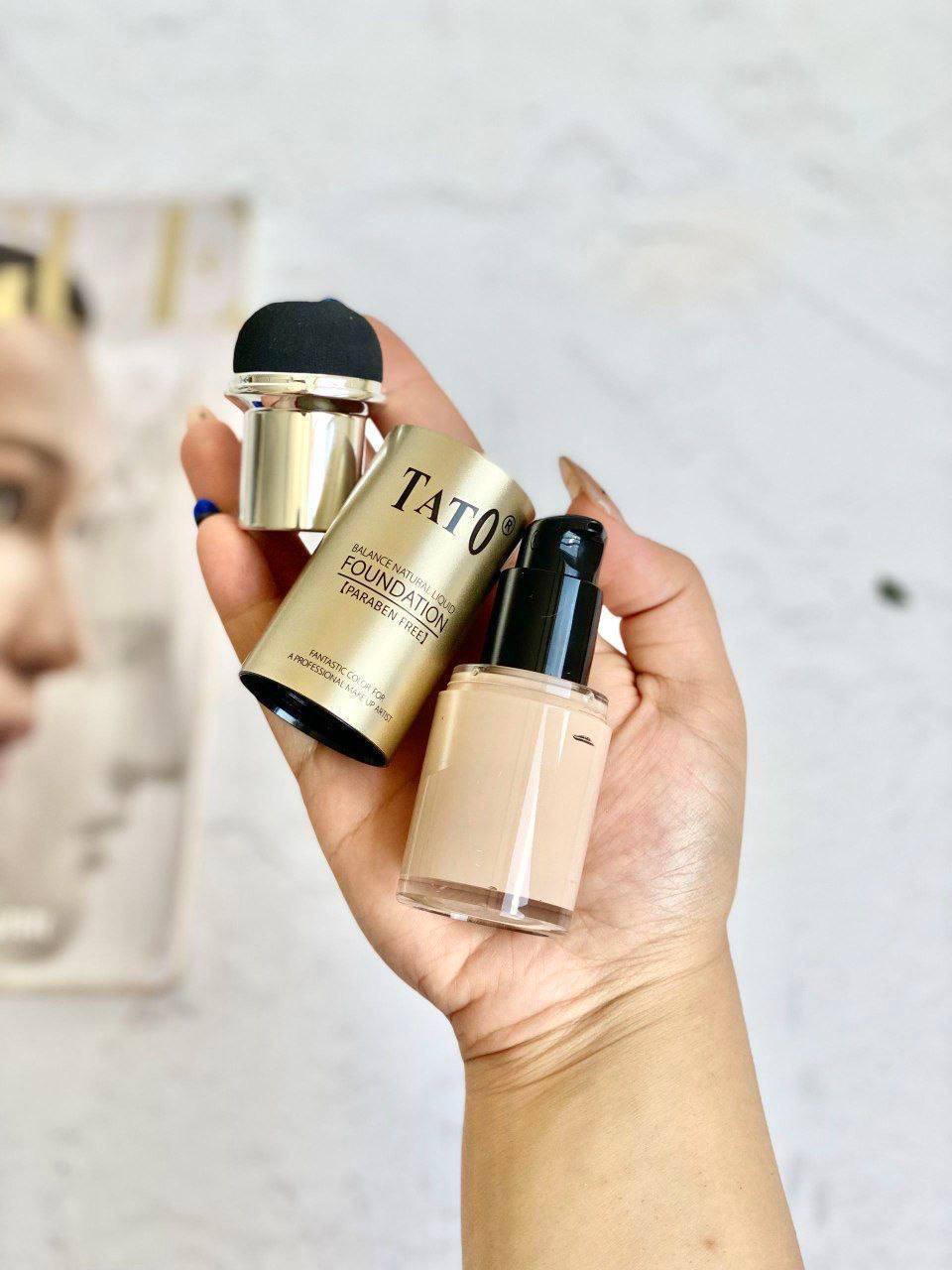 بهترین کرمپودر جدید از برند تاتو همراه پد قارچی ۳شماره رنگ عالی و کاربردی پوشش دهی بالا ضدآب و مات کیفیت فوق العاده بالا