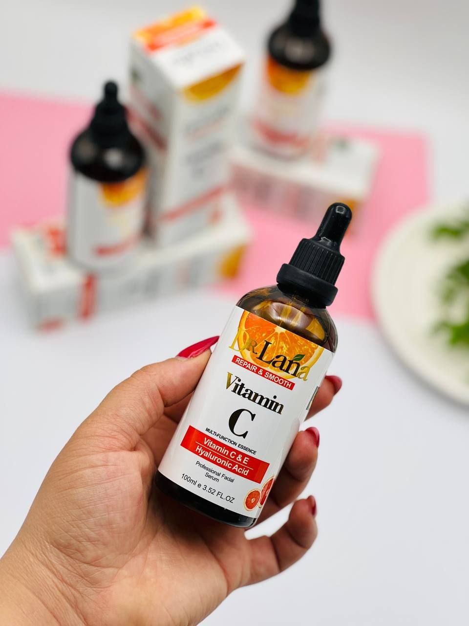 مشخصات کلی سرم ویتامین C دکتر لانا حاوی کلاژن طبیعی ضد چین و چروک پوستی ابرسانی قوی پوست ترمیم کننده قوی پوست شفاف کننده قوی پوست حاوی هایلورونیک اسید کاملا ارجینال قیمت اقتصادی حجم 100 میل
